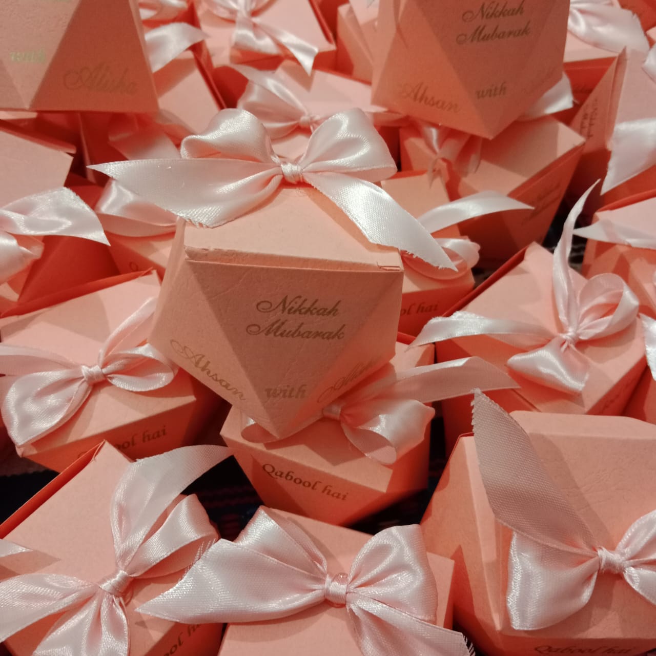 Be the first to review “Peach Colour Pantagone Bid Boxes”